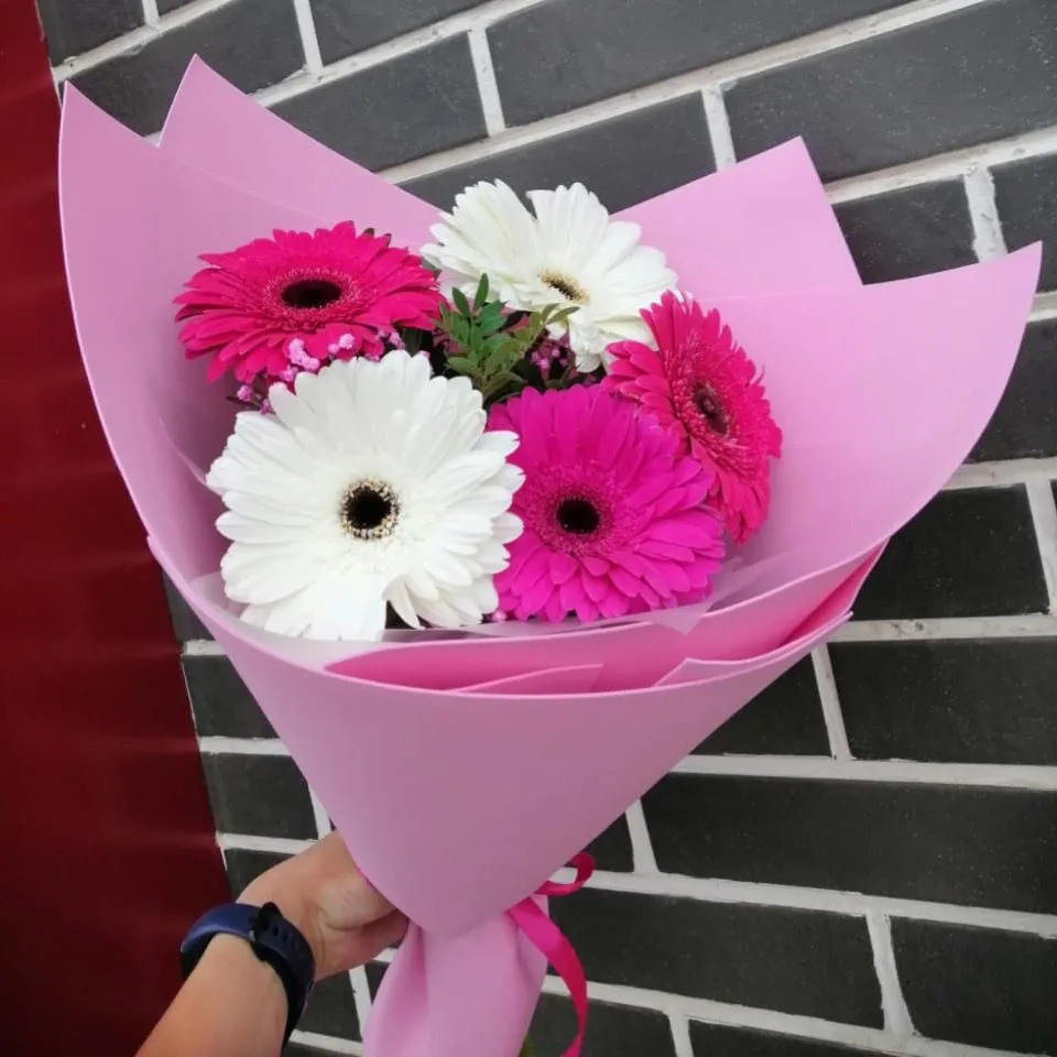 Вариант—Стандарт - гербера - 5 шт., упаковка, лента